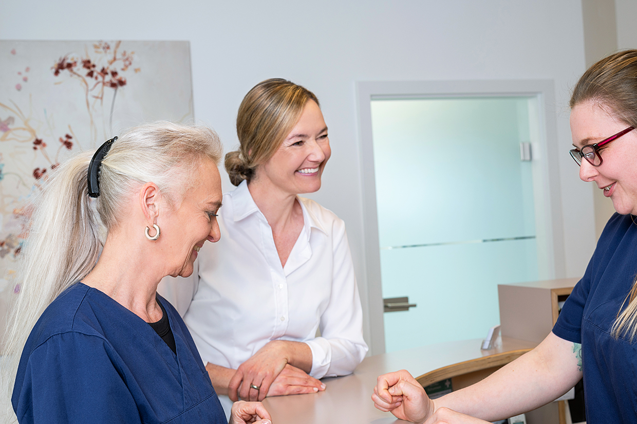 Bei uns erwartet Sie in modernen, hellen Räumen und in entspannter Atmosphäre unser freundliches Praxisteam.
